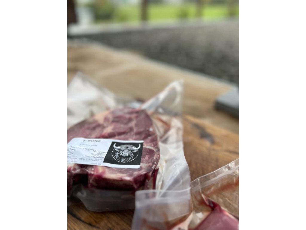 1× T-Bone steak – klasika, která spojuje jemnost svíčkové a šťavnatost roštěnce,